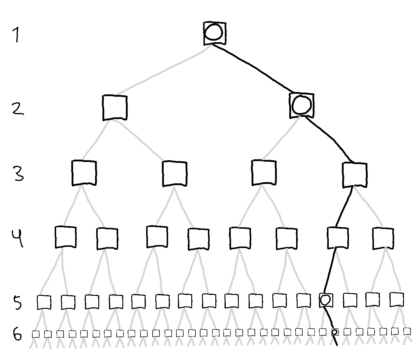 all the letters of the alphabet and a set of numbers are at the end of the decision tree.